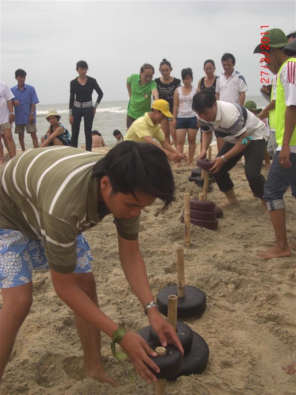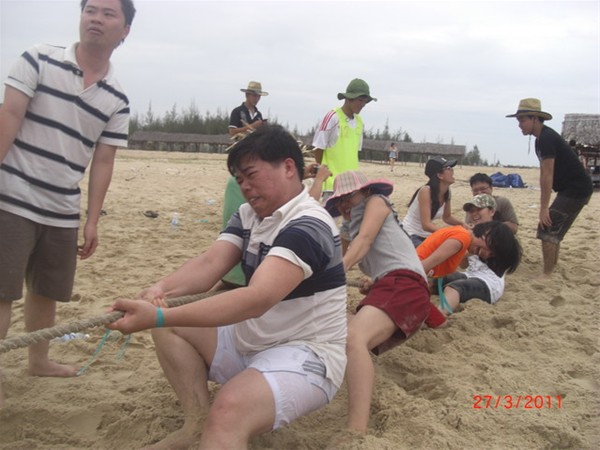 Tại khu du lịch, Quý thầy cô đã được tận hưởng bầu không khí trong lành, không gian thoáng mát và cảnh vật thật nên thơ và cùng đắm chìm với làn nước biển trong xanh, bãi cát trắng tinh cùng những trò chơi thật thú vị như kéo co, đổ nước vào chai, bóp  trên bóp dưới, xây tháp….