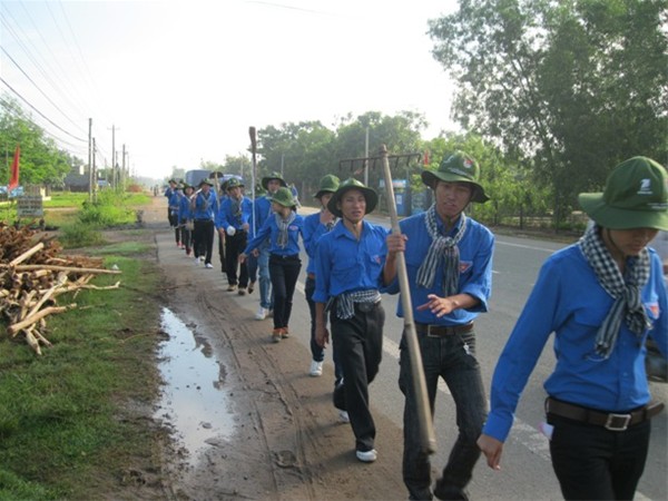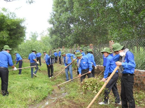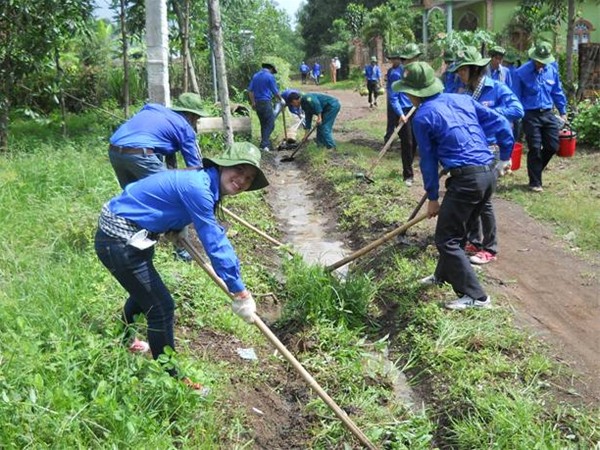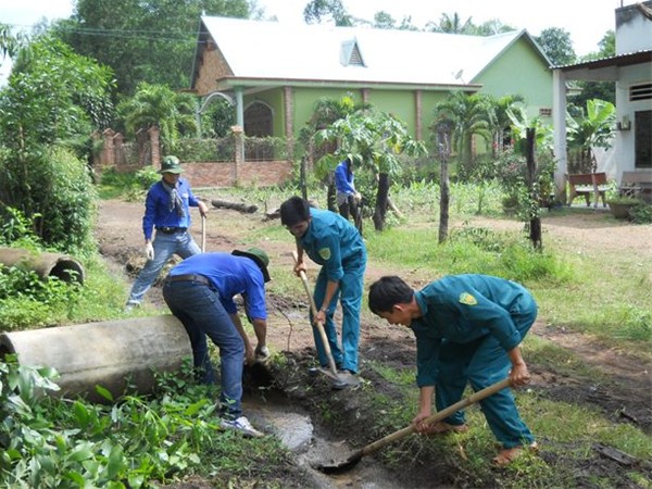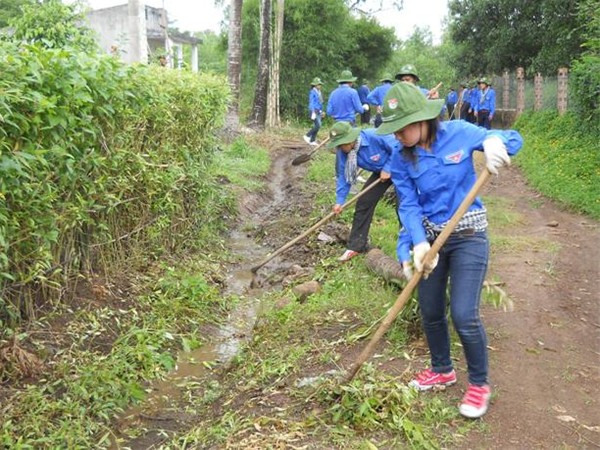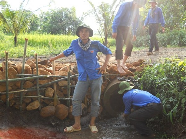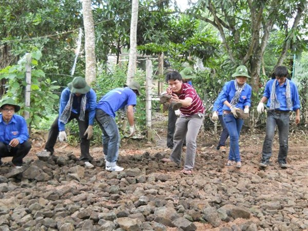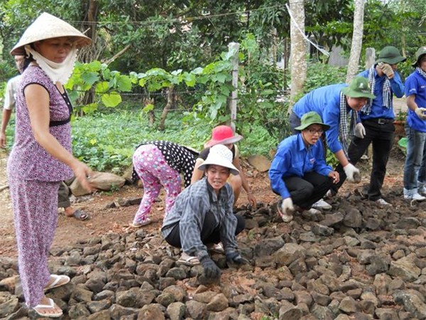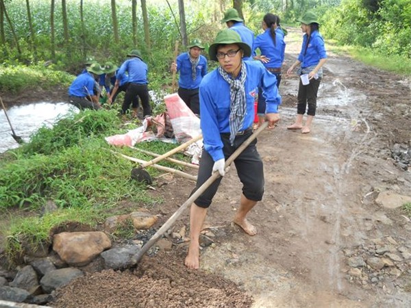 Đội Thanh niên tình nguyện cùng bà con sửa chữa đường giao thông nông thôn.