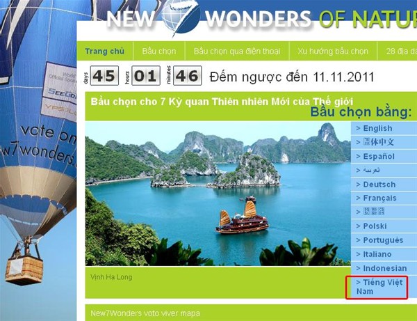 - Chọn danh sách 7 kỳ quan thế giới mới, trong đó có Vịnh Hạ Long của Việt Nam.