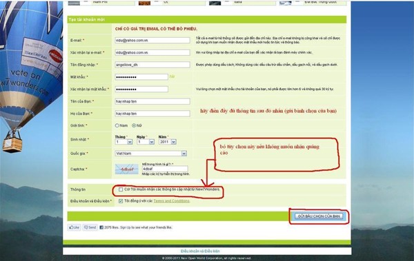 - Điền đầy đủ các thông tin theo mẫu bên dưới. Sau khi hoàn thành, các bạn nhấn Gửi bầu chọn của bạn.
