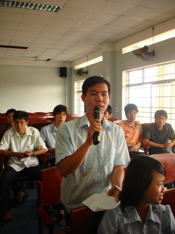 Hình 7 :Thầy Th.S Phạm Công Xuyên (đứng) cũng tham gia đối thoại cùng Ban giám hiệu về các vấn đề có liên quan đến phòng Công tác Sinh viên.