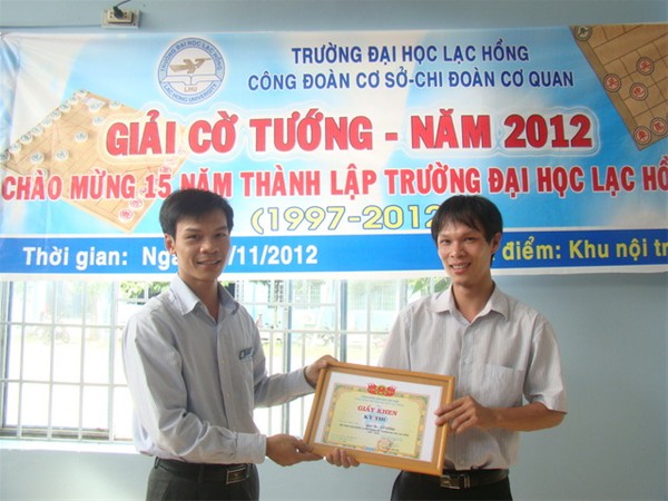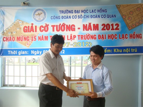 Chào mừng kỉ niệm 15 năm thành lập trường Đại học Lạc Hồng (1997 – 2012) và chào mừng Ngày nhà giáo Việt Nam 20 – 11. Công đoàn cơ sở – Chi đoàn Cơ quan tổ chức Giải cờ tướng dành cho cán bộ, giáo viên năm 2012. Giải cờ tướng năm nay thu hút đông đảo các cán bộ, giáo viên từ nhiều phòng khoa tham gia tại sảnh Khu nội trú của trường.