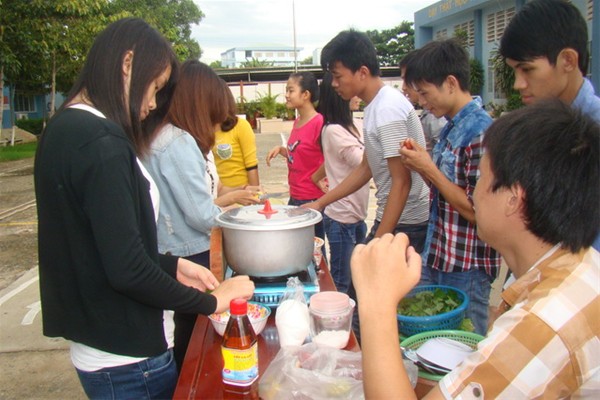 Hình 1: Các nhóm thực hiện phần thi nấu ăn.