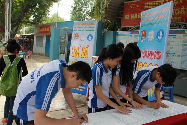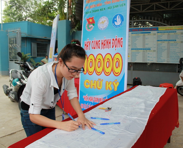 Hình 4: Sinh viên tham gia ủng hộ 10.000 chữ ký