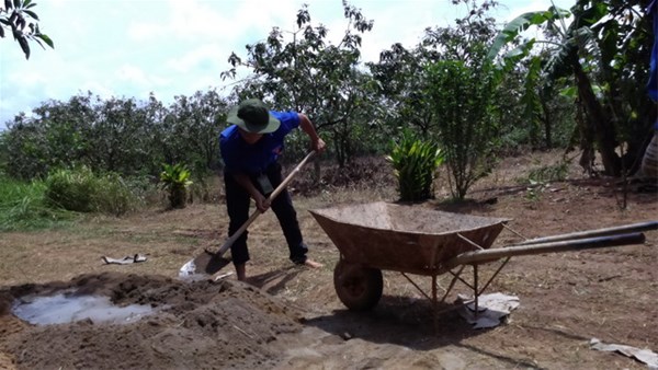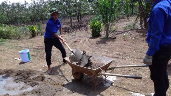 Hình 3: Phụ trách việc trộn xi măng xây nhà