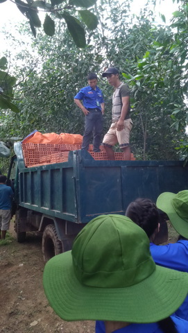 Hình 2: Sinh viên tình nguyện chuẩn bị vận chuyển gạch xây nhà