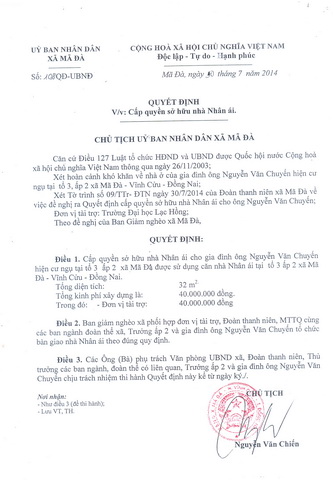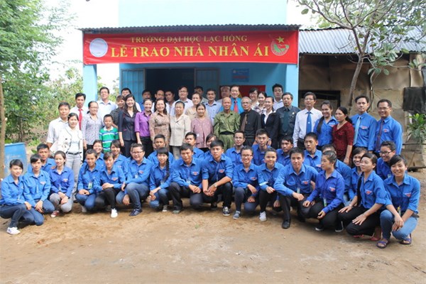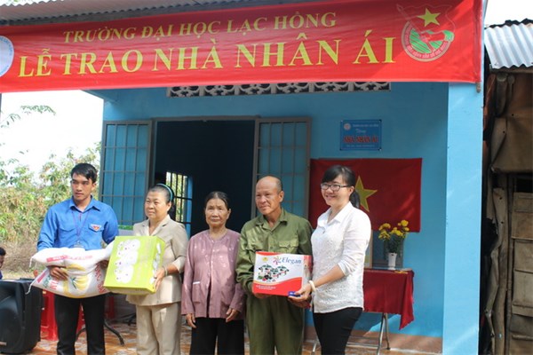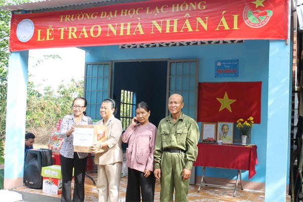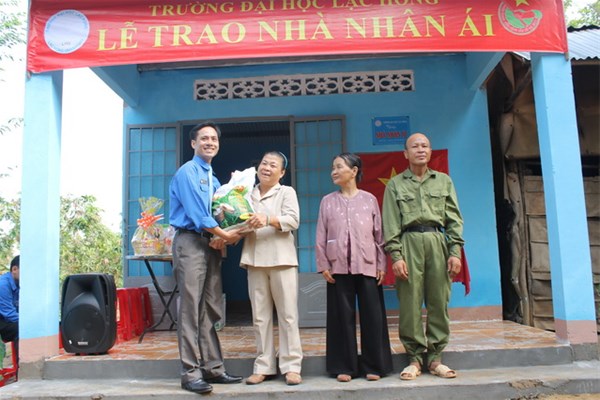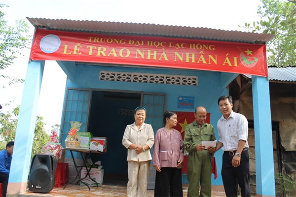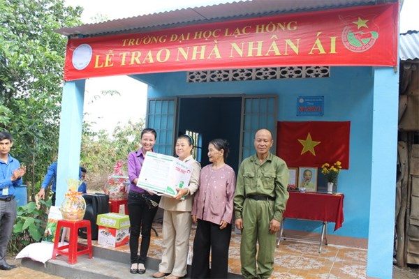 Sáng ngày 03/8/2014, căn nhà nhân ái được chính thức được trao tặng cho ông Chuyến. Tham gia buổi lễ trao tặng nhà, về phía Đảng ủy, Ban giám hiệu nhà trường có Đ/c Nguyễn Trùng Phương – Bí thư Đảng ủy nhà trường; NGND-TS Đỗ Hữu Tài – P. Bí thư Đảng ủy, Hiệu trưởng nhà trường; NGƯT-TS Nguyễn Thị Thu Lan – P. Hiệu trưởng nhà trường; Đ/c Lê Sơn Quang – Bí thư Đoàn trường; các thầy cô là trưởng, phó các phòng, khoa; các Đ/c Bí thư, phó Bí thư, Đảng viên chi bộ 3, chi bộ 4, chi bộ 7, chi bộ 9; lãnh đạo huyện ủy, UBND huyện Vĩnh Cửu; lãnh đạo Đảng ủy, UBND xã Mã Đà; cùng với 30 sinh viên tình nguyện hiện đang công tác Mùa hè xanh tại xã Mã Đà.