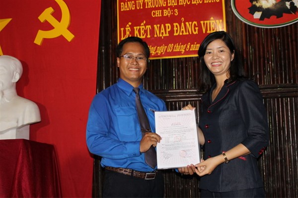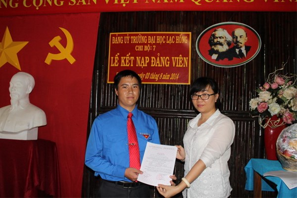 Sau khoảng thời gian theo dõi và thử thách cũng như những thành tích đã đạt được trong quá trình học tập và công tác của mình. Được sự giới thiệu của tổ chức Đoàn thanh niên, Đảng ủy trường ĐH Lạc Hồng đã tổ chức công bố quyết định của Đảng ủy khối các cơ quan tỉnh để kết nạp 05 thành viên của đội thanh niên tình nguyện Mùa hè xanh năm 2014 hiện đang công tác tại mặt trận xã Mã Đà, huyện Vĩnh Cửu, tỉnh Đồng Nai vào Đảng cộng Sản Việt Nam.
