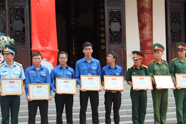 Hình 1: Các chiến sĩ tình nguyện ĐH Lạc Hồng tại lễ báo công
