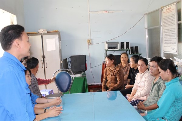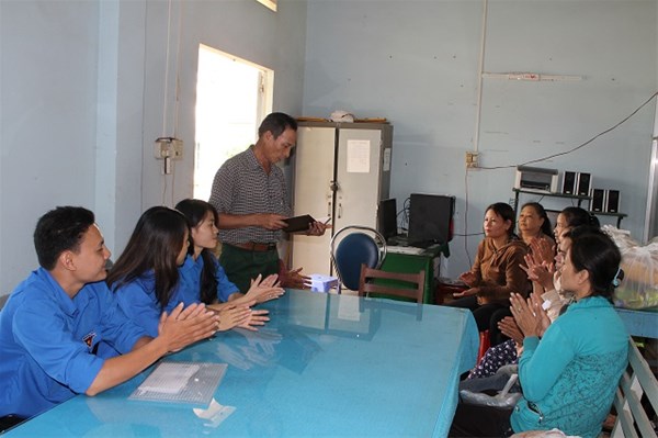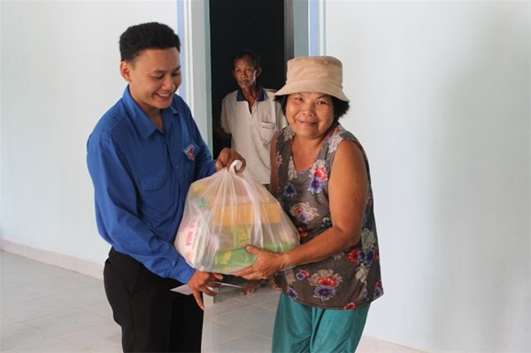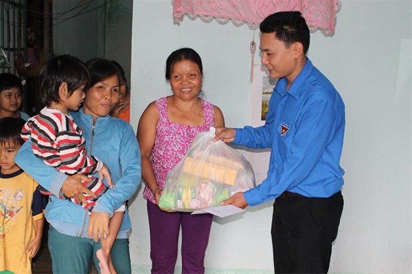 Hình 2: Đồng chí Võ Ngọc Vinh đại diện nhà trường trao quà cho gia đình có con em bị nhiễm chất độc Dioxin tại huyện Cẩm Mỹ.