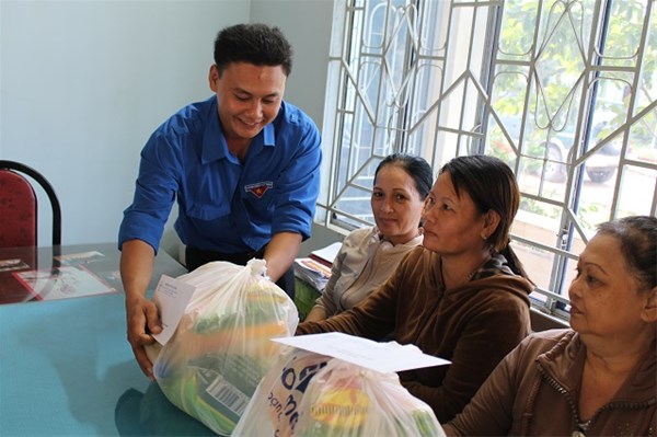 Hình 1: Đồng chí Võ Ngọc Vinh – Chuyên viên văn phòng Đoàn trường phát biểu trong buổi tặng quà tại huyện Cẩm Mỹ.