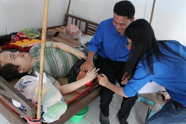 Sau khi tập trung làm lễ tiếp nhận và trao tặng quà cho các hộ gia đình có trẻ em bị nhiễm chất độc da cam, Đoàn đã đi đến trực tiếp từng nhà của các nạn nhân để thăm hỏi và tặng quà (mỗi phần quà trị giá 600.000đ/nạn nhân).