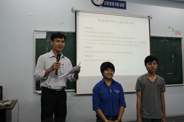 Khóa tập huấn cán bộ Đoàn – Hội sinh viên trường sẽ diễn ra từ ngày 05/01 đến ngày 11/01/2015 tại giảng đường E105, cơ sở 3. Riêng 02 ngày 10; 11 tháng 01 sẽ tập huấn tại Công viên Biên Hùng.