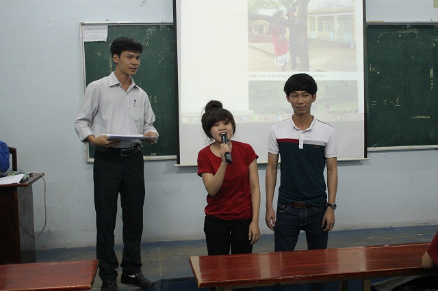 Hình 2; 3- Đ/c Trần Tiến - Phó Bí thư Đoàn trường; Chủ tịch Hội sinh viên trường đang trao đổi cùng Đoàn viên; Hội viên về vai trò của Bí thư, Chi hội trưởng .