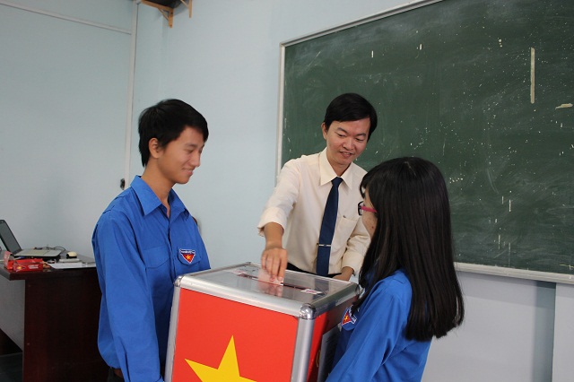 Hình 1- Đội TNTN đang phổ biến hoạt động quyên góp tại một lớp học