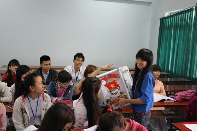 Hình 1- Đến trực tiếp từng lớp học để vận động quyên góp cho chương trình ý nghĩa này