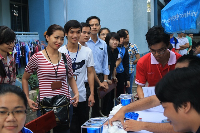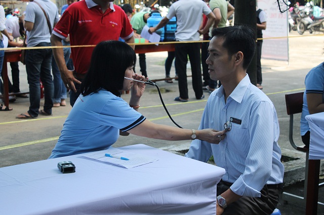 Trong buổi sáng ngày hội diễn ra, những người tham gia hiến máu đã đăng ký hiến máu và được các bác sĩ của bệnh viện Chợ Rẫy đo huyết áp, lấy mẫu máu, kiểm tra và tư vấn sức khỏe trước khi được hiến máu.