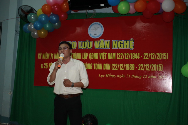 Đến dự đêm văn nghệ, Đ/c Nguyễn Trùng Phương – Bí thư Đảng ủy nhà trường cũng không quên gửi lời chúc mừng các thành tích của Hội Cựu chiến binh, lực lượng Dân quân tự vệ của nhà trường đã đạt được trong thời gian qua nhằm đảm bảo tình hình ổn định an ninh trật tự trong trường; đồng thời cũng tuyên dương những nỗ lực của Đoàn Thanh niên, Ban Quản lý Khu Nội trú đã phối hợp với Hội Cựu chiến binh nhà trường tổ chức đêm văn nghệ đầy ý nghĩa.