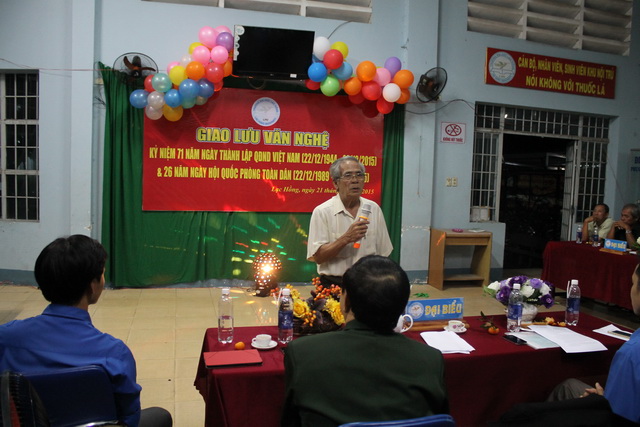 Đêm văn nghệ đã diễn ra trong không khí vui tươi, đầm ấm với phần thể hiện các ca khúc cách mạng khơi gợi về những năm tháng chiến đấu hào hùng của QĐND Việt Nam từ những ngày đầu thành lập. Bên cạnh đó, Ban Tổ chức còn có tiết mục đố vui với hình thức hái hoa dân chủ với các câu hỏi liên quan đến chủ đề QĐND Việt Nam 71 năm thành lập và trưởng thành, các câu hỏi tìm hiểu về tổ chức Hội Cựu chiến binh nhà trường…
