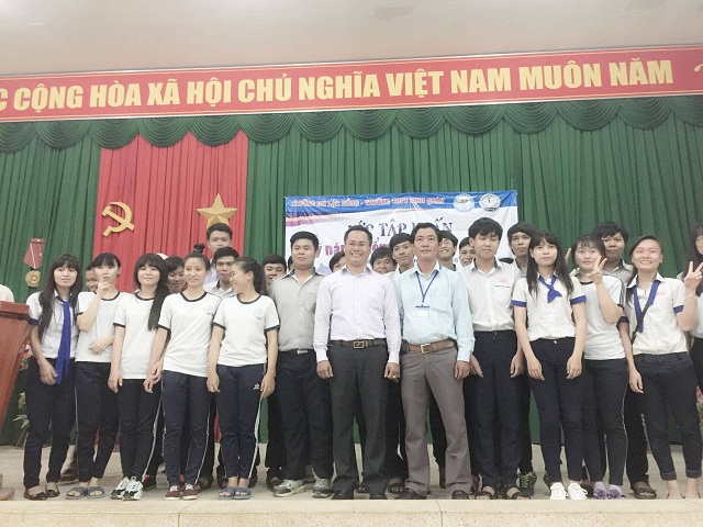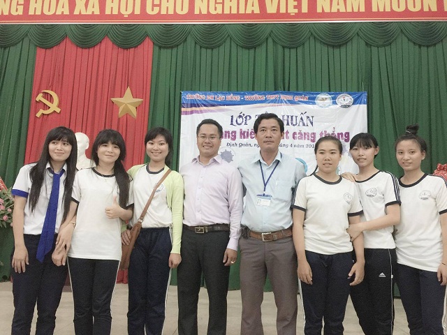Hình 4- Chụp hình lưu niệm cùng Thầy Hoắc Công Sơn - Hiệu trưởng và các học sinh trường THPT Định Quán