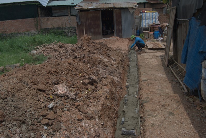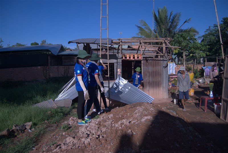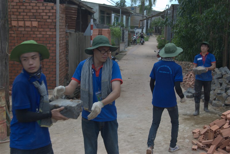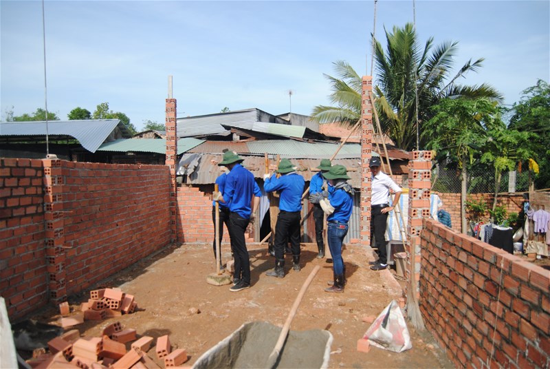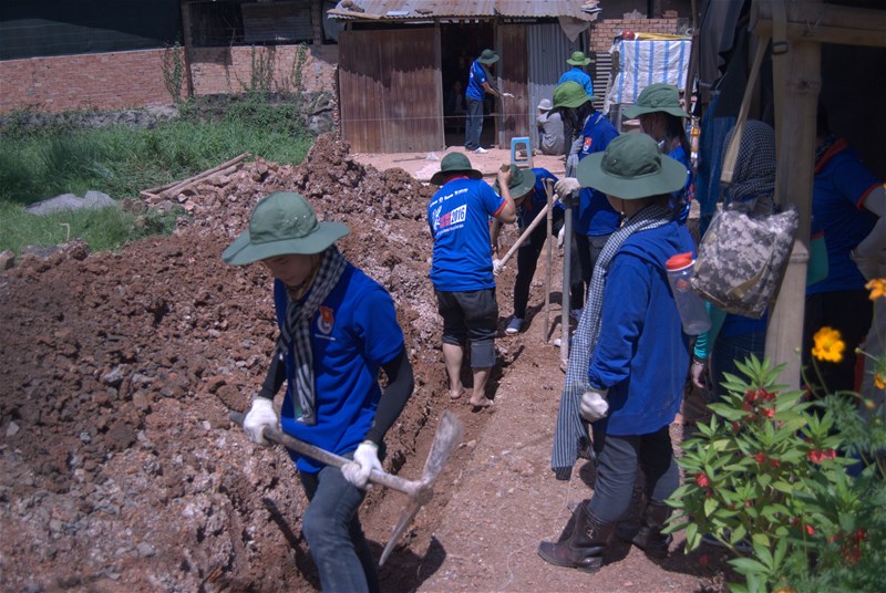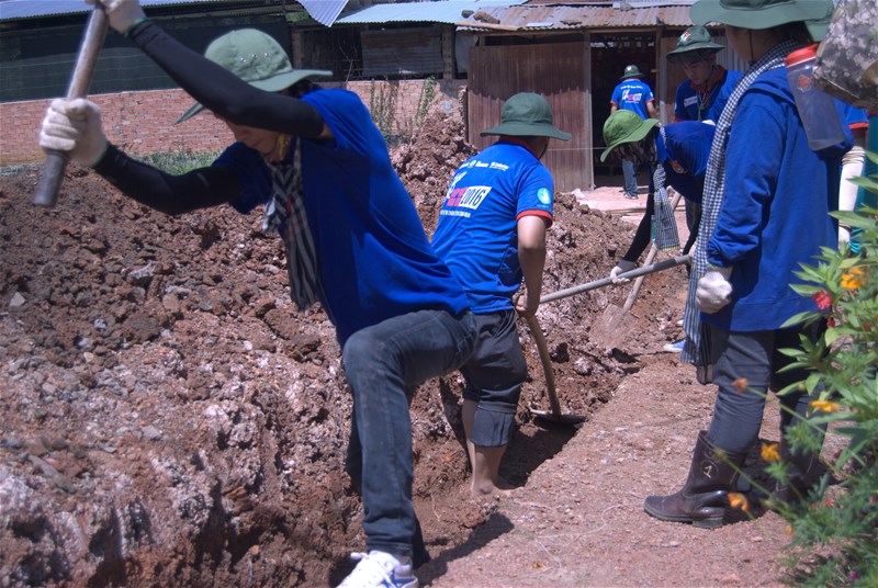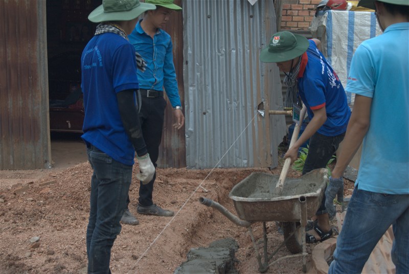 Hình 3: Chiến sỹ Mùa hè xanh (Sinh viên khoa Kỹ thuật Công trình) xây móng cho ngôi nhà