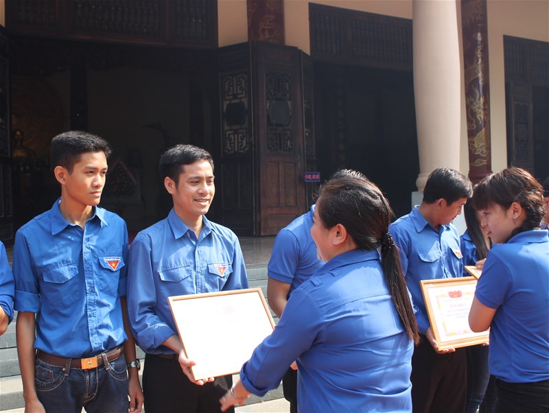 Hình 2: Tặng giấy khen cho các chiến sỹ Mùa Hè Xanh