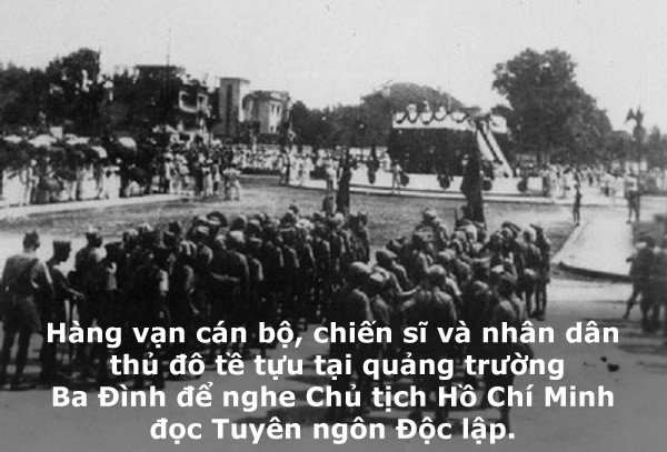 Ngày 02/9/1945, tại Quảng trường Ba Đình (Hà Nội) lịnh sử, trước cuộc mít tinh của gần một triệu đồng bào, Chủ tịch Hồ Chí Minh thay mặt Chính phủ Lâm thời trịnh trọng đọc bản Tuyên ngôn Độc lập, tuyên bố trước quốc dân và thế giới: Nước Việt Nam Dân chủ Cộng hòa ra đời (nay là Cộng hòa xã hội chủ nghĩa Việt Nam). Từ đó, ngày 02/9 là Ngày Quốc khánh của nước ta.