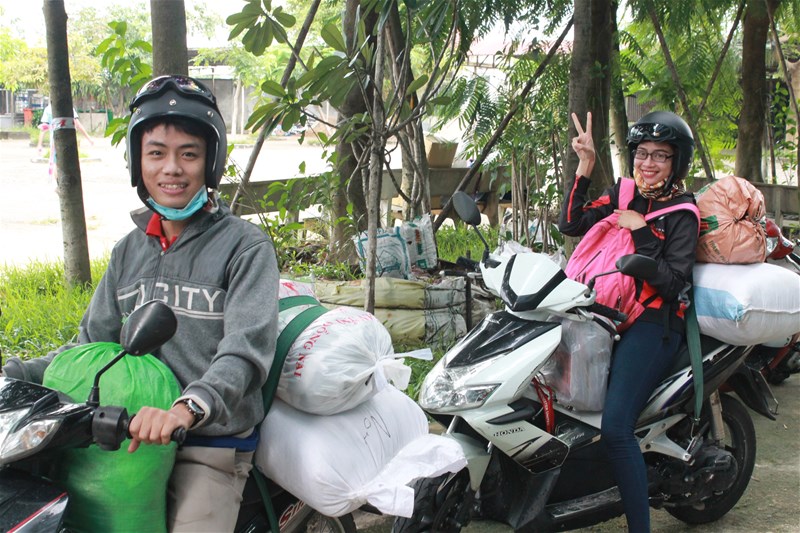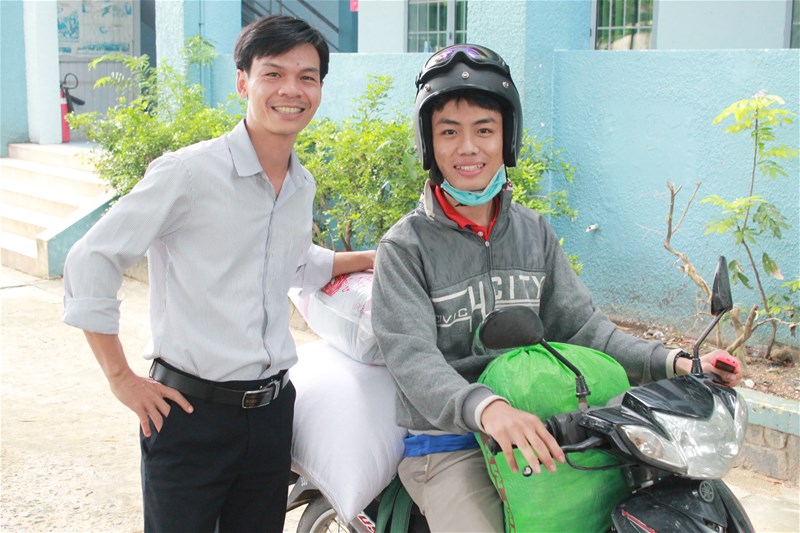 Đoàn Công tác đi gồm đại diện Công đoàn trường, Đoàn Thanh niên, Hội Sinh viên trường và sinh viên đang học tại trường (Công đoàn: Thầy Nguyễn Hà Thoại Phi; Đoàn, Hội: Lê Sơn Quang, Huỳnh Thúc Hiếu, Đặng Đại Hùng; sinh viên Nguyễn Văn Tuấn, lớp 13DC111, khoa Cơ Điện - Điện tử).