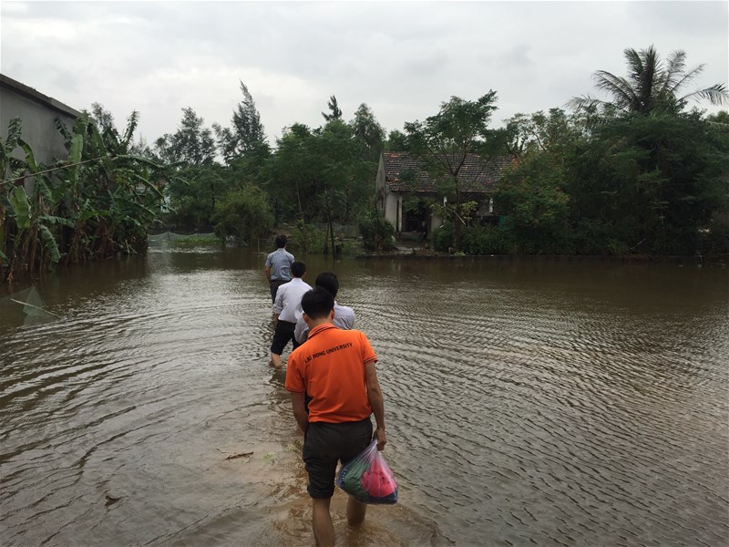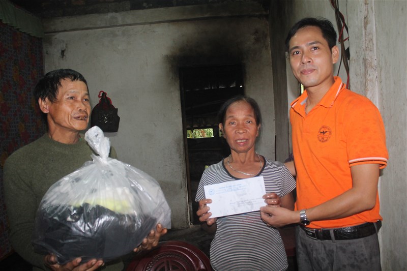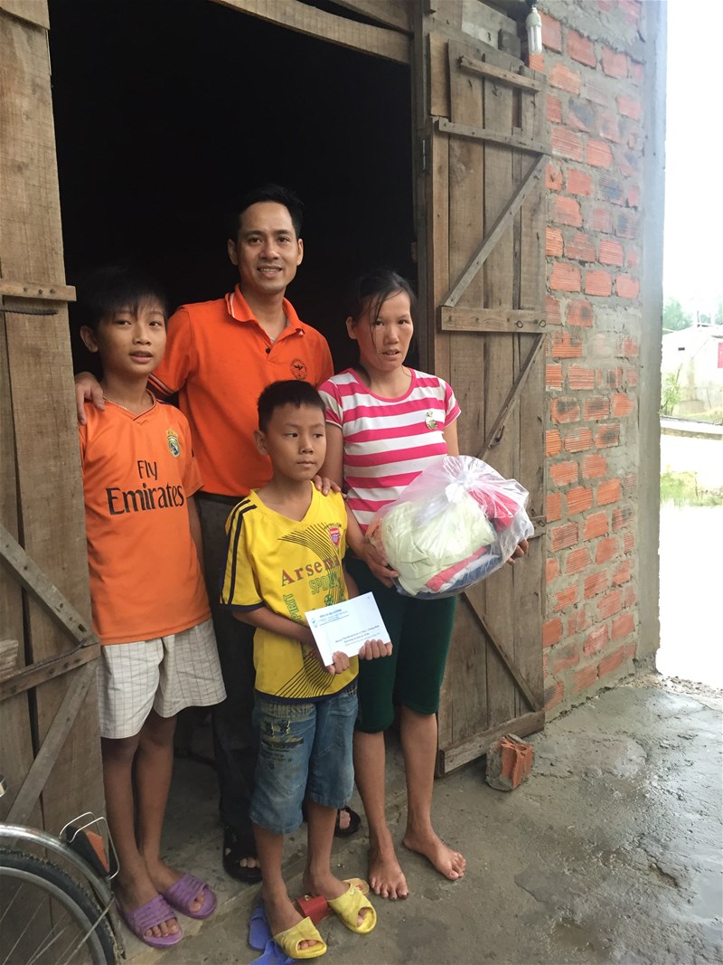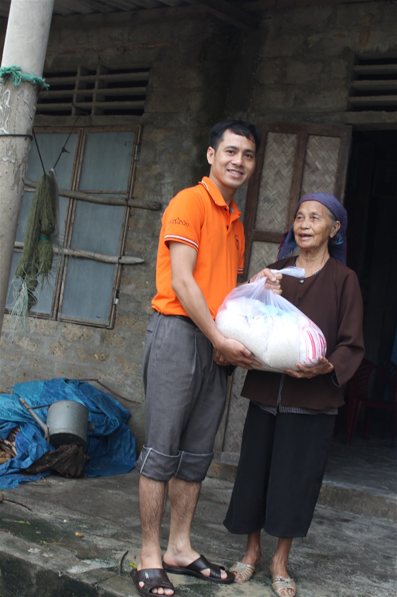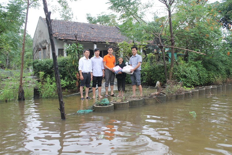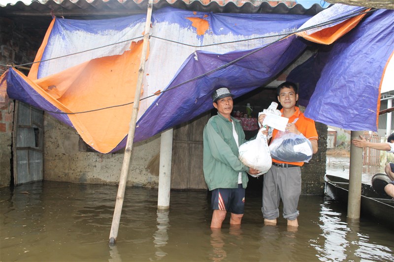 Hình 2: Trao quà và tiền mặt tận tay bà con vùng lũ