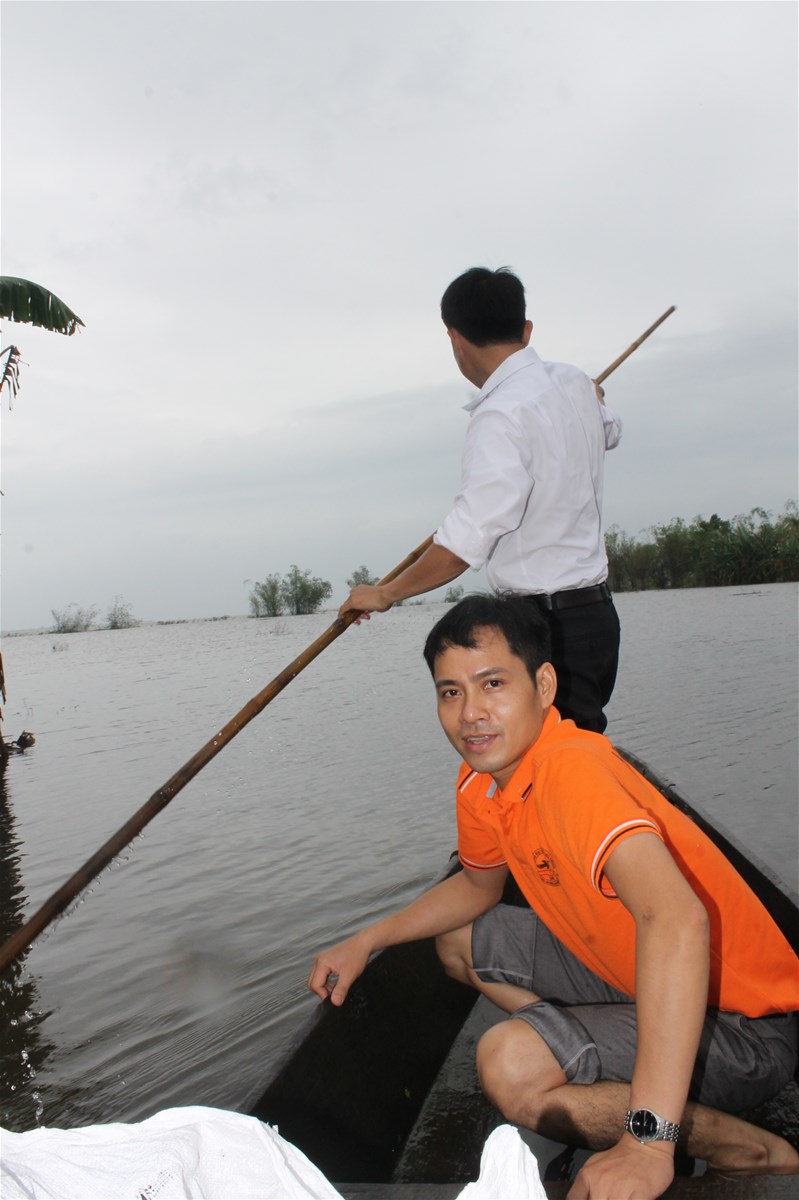 Hình 3: Đi thuyền đến tận nơi trao quà cho gia đình bị ngập nặng