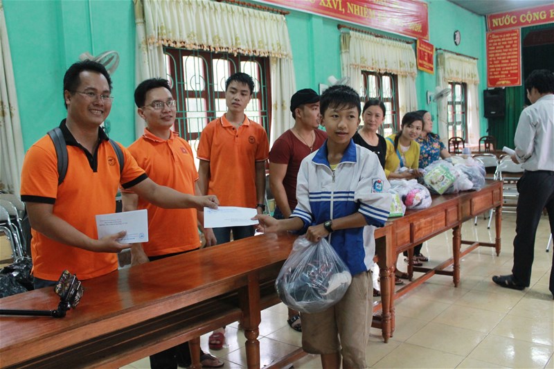 Được sự hỗ trợ vận chuyển hàng miễn phí từ nhà xe Minh Huy (huyện Lệ Thủy, tỉnh Quảng Bình), sự hỗ trợ của Huyện đoàn Lệ Thủy nên công tác trực tiếp đi tặng quà tận tay cho đồng bào miền Trung bị lũ lụt gặp nhiều thuận lợi.