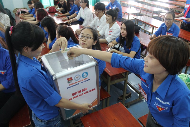 Ngay từ ngày 17/10/2016 Trường Đại học Lạc Hồng đã phát động quyên góp, ủng hộ đồng bào miền Trung bị lũ lụt. Công tác quyên góp, ủng hộ được các Thầy, Cô, các bạn học viên, sinh viên, cựu sinh viên và các mạnh thường quân ủng nhiệt tình hưởng ứng. Trong vòng 10 ngày, số tiền, quà đã đủ 200 phần quà (trị giá 100 triệu).