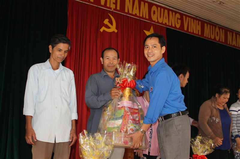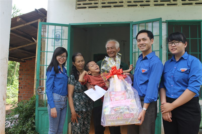 Hình 1: Đ/c Lê Sơn Quang - Bí thư Đoàn trường đại diện thăm và tặng quà cho các gia đình