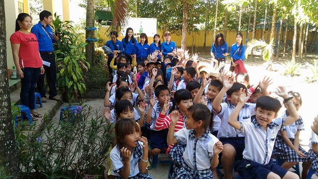 Hình 2: Đoàn viên, thanh niên trường ĐH Lạc Hồng tổ chức sinh hoạt cho các em thiếu nhi