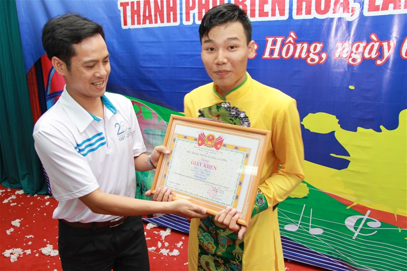 Hình 3: Đại diện Đoàn Thanh niên TP. Biên Hòa và Đoàn trường ĐH Lạc Hồng trao các giải thưởng