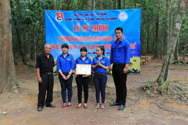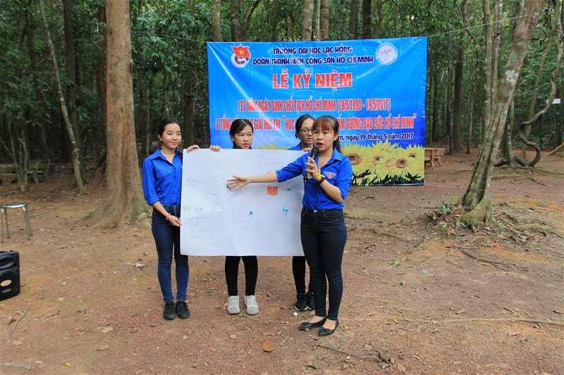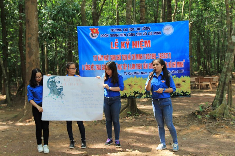 Sáng ngày 19/5/2017, Đoàn trường ĐH Lạc Hồng tổ chức du khảo về nguồn nhân kỷ niệm 127 năm Ngày sinh Chủ tịch Hồ Chí Minh (19/5/1980 – 19/5/2017) tại khu Di tích lịch sử Chiến khu Đ. Tham dự chương trình có Đ/c Nguyễn Trùng Phương – Bí thư Đảng ủy trường, Đ/c Lê Sơn Quang – Bí thư Đoàn trường, Đ/c Nguyễn Việt Hùng – Phó trưởng Ban Quản lý Khu Nội trú, Đ/c Trần Tiến – Phó Bí thư thường trực Đoàn trường cùng 30 đoàn viên, sinh viên đạt điểm cao nhất trong phần thi online Hội thi “Học tập và làm theo tấm gương đạo đức Hồ Chi Minh” năm 2017.