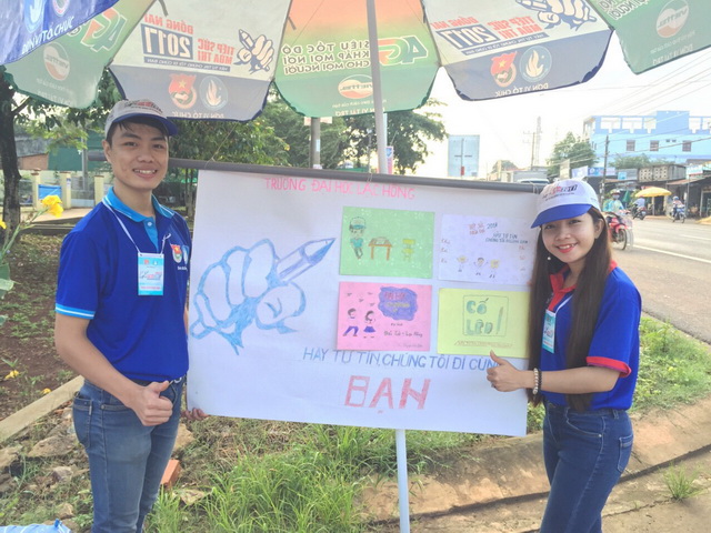 Hình 4: Một bảng khẩu hiệu rất "dễ thương" của các tình nguyện viên ĐH Lạc Hồng