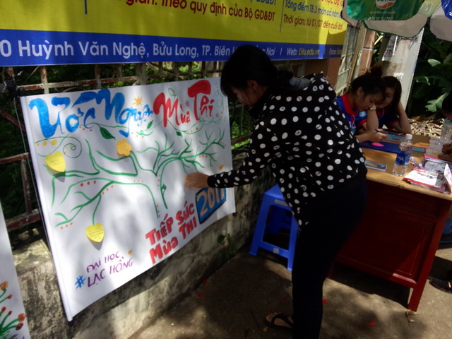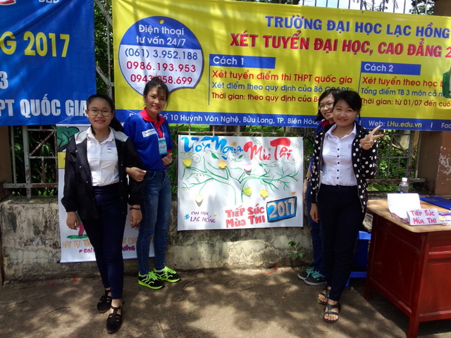 Chiến dịch Tiếp sức mùa thi 2017 đã dân đi đến những ngày làm việc cuối cùng. Tuy thời gian làm việc không nhiều, nhưng với chủ trương thực hiện một chương trình Tiếp sức mùa thi "An toàn, hiệu quả, tiết kiệm, sáng tạo", các chiến sĩ Tiếp sức mùa thi của trường Đại học Lạc Hồng tham gia chiến dịch năm nay đã để lại trong lòng các em học sinh tham gia kỳ thi THPT quốc gia năm 2017 và các bậc phụ huynh rất nhiều ấn tượng. Bên cạnh việc thực hiện các công việc chính là hỗ trợ thí sinh và người thân trong quá trình tham gia thi, các bạn sinh viên đã cho thấy sự sáng tạo của mình bằng cách sử dụng những vật liệu đơn giản như: Giấy màu, bút vẽ, giấy rooki để thực hiện các khẩu hiệu hết sức "dễ thương" đặt tại các điểm tiếp sức để động viên các bạn thí sinh dự thi.