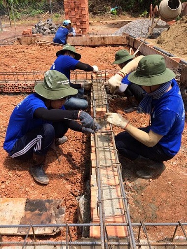Hình 1- Công tác chuyền gạch, đá tiến hành xây dựng phần móng