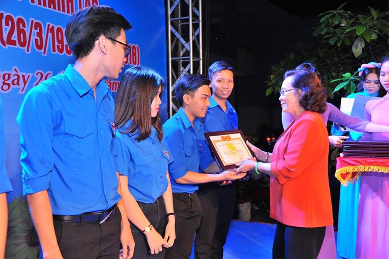 Hình 4 – Đ/c Nguyễn Trùng Phương - Bí thư Đảng ủy Trường ĐH Lạc Hồng tuyên dương các tập thể và cá nhân có thành tích xuất sắc trong công tác Đoàn năm 2017