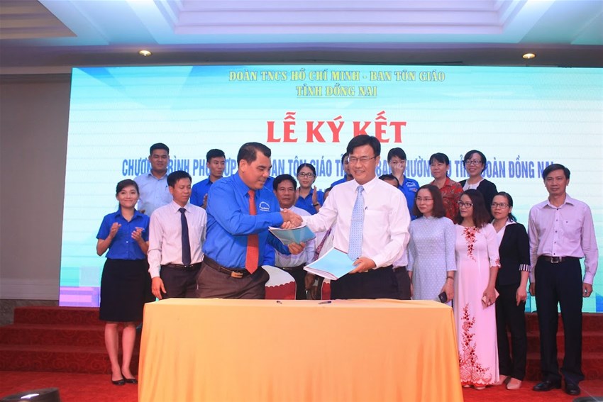 Nhằm nâng cao công tác phối hợp với các ban ngành, đoàn thể để đề ra những giải pháp cụ thể và đồng bộ, tại hội nghị đã diễn ra lễ kí kết chương trình phối hợp về “Công tác dân tộc” với Ban Dân tộc tỉnh giai đoạn 2018 – 2022 và chương trình phối hợp về “Đẩy mạnh tuyên truyền chủ trương, chính sách pháp luật của Đảng, Nhà nước về tín ngưỡng, tôn giáo và tăng cường công tác đoàn kết, tập hợp thanh niên tín đồ tôn giáo trên địa bàn tỉnh” với Ban Tôn giáo tỉnh giai đoạn 2018 – 2022.