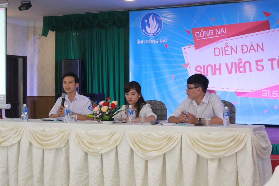 Hình 2: Đ/c Hồ Hồng Nguyên – Phó bí thư Tỉnh Đoàn/Chủ tịch Hội Sinh viên Tỉnh và Đ/c Trần Tiến – Phó bí thư Đoàn trường/Chủ tịch Hội Sinh viên trường ĐH Lạc Hồng chủ trì diễn đàn