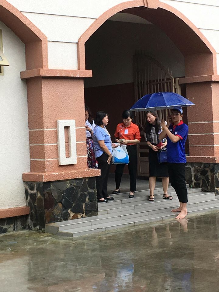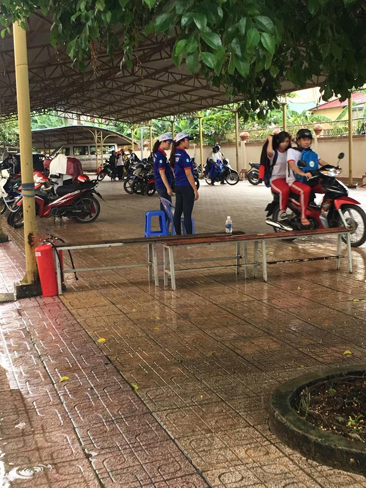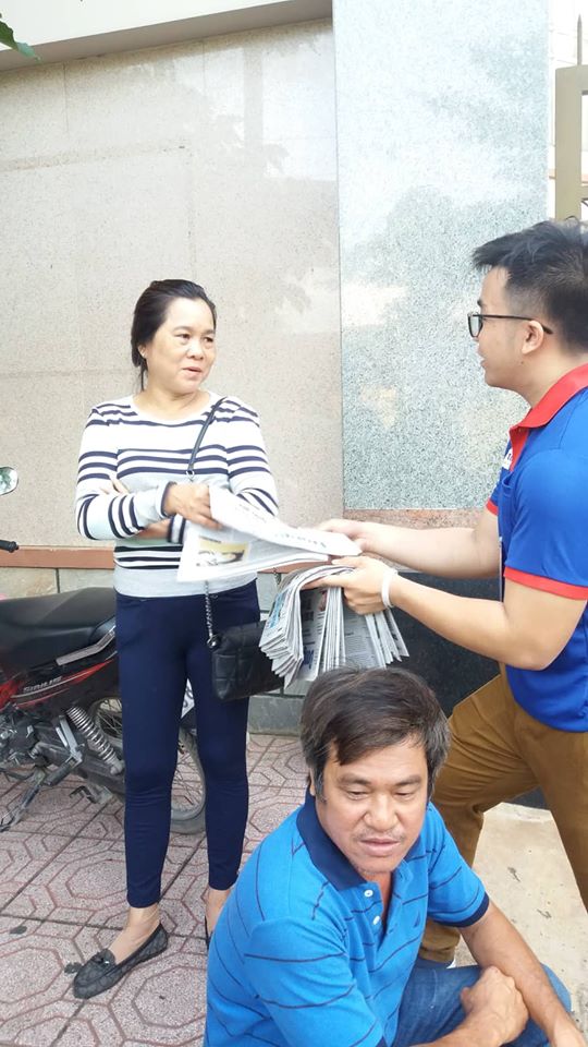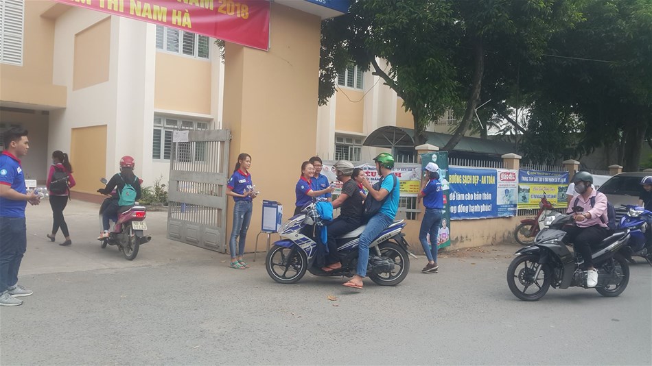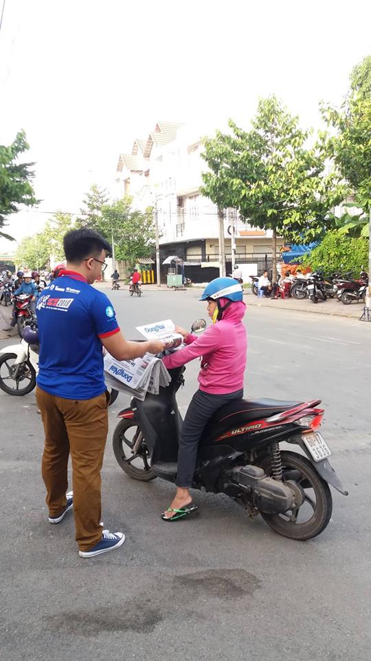 Hình 5 – Các bạn sinh viên phát những tờ báo cho các phụ huynh trong thời gian chờ đợi các em thi