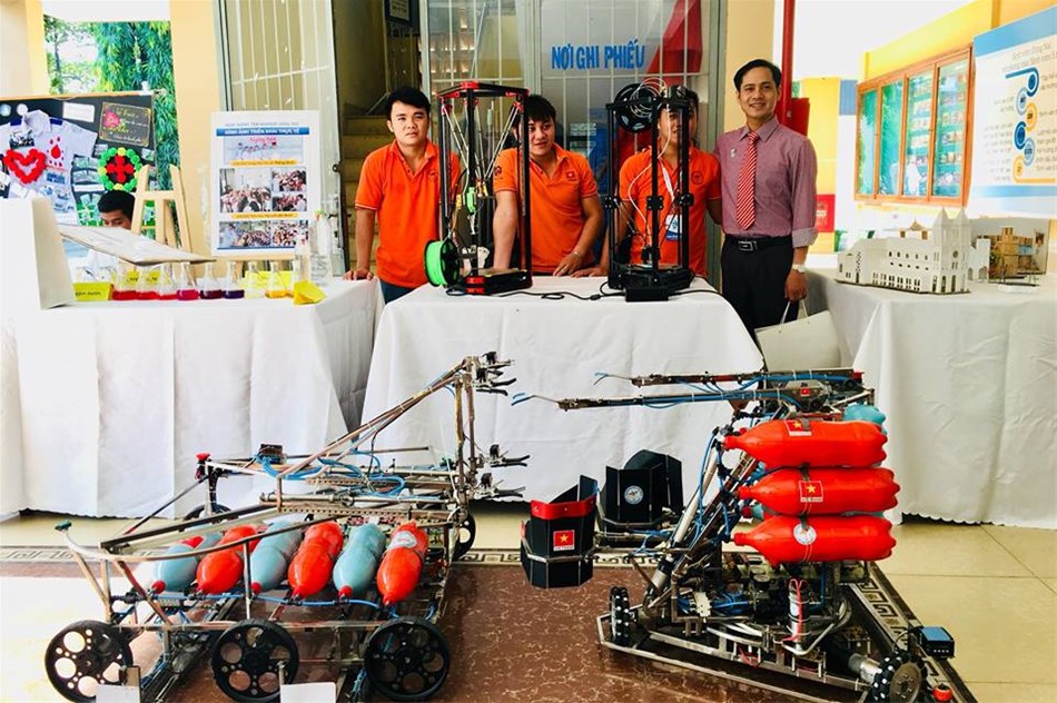 Hình 2: Đ/c Lê Sơn Quang – Bí thư Đoàn trường chụp hình lưu niệm cùng đội hình triển lãm