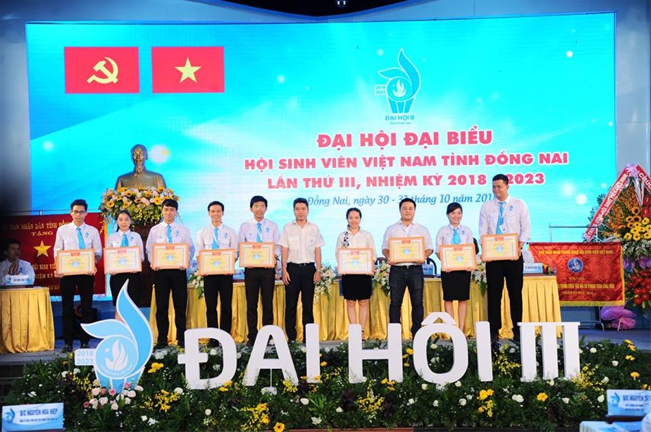 Dịp này, UBND tỉnh cũng đã trao tặng Đại hội đại biểu Hội Sinh viên tỉnh lần thứ III nhiệm kỳ 2018-2023 bức trường với nội dung: “Sinh viên Đồng Nai chủ động học tập, sáng tạo, bản lĩnh, hội nhập, phát triển”. UBND tỉnh cũng tặng bằng khen cho 4 tập thể và 18 cá nhân đạt thành tích xuất sắc trong công tác Hội và phong trào sinh viên tỉnh nhiệm kỳ 2013-2018. Trung ương Hội Sinh viên Việt Nam trao Cờ thi đua cho tập thể Hội Sinh viên tỉnh Đồng Nai; bằng khen cho 7 tập thể và 9 cá nhân đạt thành tích xuất sắc trong công tác Hội và phong trào sinh viên tỉnh nhiệm kỳ 2013-2018.