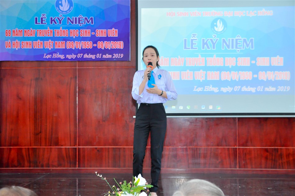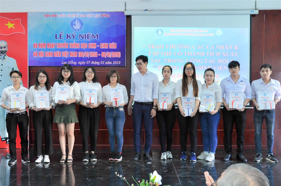 Thiết thực chào mừng kỉ niệm 69 năm Ngày truyền thống Học sinh – Sinh viên (09/01/1950 – 09/01/2019) và tuyên dương các điển hình “Sinh viên 5 tốt” cấp trường trong năm học 2017 – 2018. Sáng ngày 07/01/2019, tại phòng I209, cơ sở 6, trường Đại học Lạc Hồng; Hội Sinh viên trường ĐH Lạc Hồng đã long trọng tổ chức lễ kỉ niệm Ngày truyền thống học sinh, sinh viên và Hội Sinh viên Việt Nam.