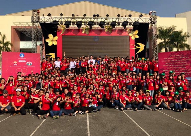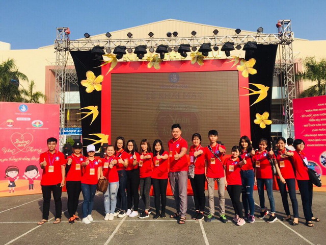 Hình 5: Cùng với sinh viên toàn tỉnh chụp ảnh lưu niệm tại nơi phát động ngày hội "Xuân yêu thương" 2019