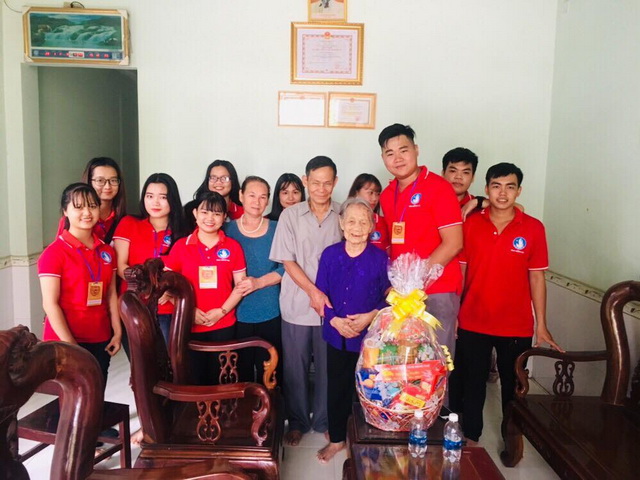 Hình 1: Sinh viên LHU chuẩn bị đi thăm các gia đình chính sách