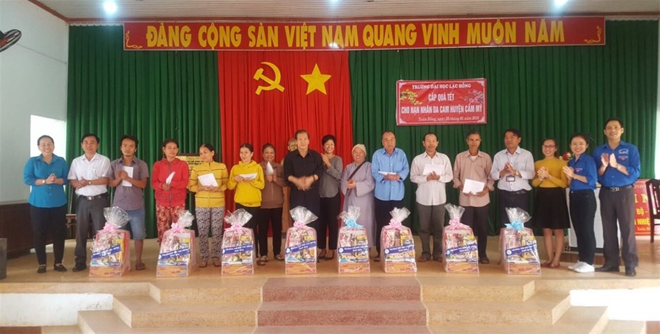Ngày 23/01/2019, trường ĐH Lạc Hồng phối hợp với Hội Chất độc da cam/dioxin tỉnh Đồng Nai đã tổ chức thăm và tặng quà quý IV năm 2018, quý I năm 2019 và quà tết 2019 của Thầy Hiệu trưởng và nhà trường cho 20 nạn nhân bị nhiễm chất độc da cam/dioxin tại 02 huyện Cẩm Mỹ và Định Quán thuộc tỉnh Đồng Nai. Tham gia chuyến thăm và tặng quà lần này có sự tham gia của NGND.TS Đỗ Hữu Tài – Hiệu trưởng nhà trường; TS. Đỗ Thị Lan Đài – Chủ tịch Hội đồng Quản trị trường ĐH Lạc Hồng, Hiệu trưởng trường Song ngữ Lạc Hồng.