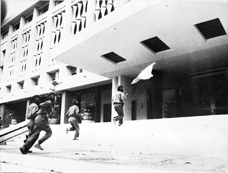Hình 4: Bộ đội tiến vào treo cờ giải phóng trên Dinh Độc Lập